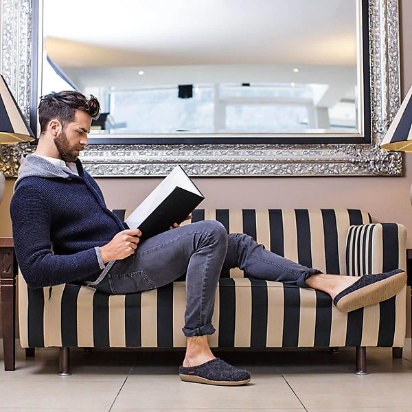 Der robuste Allroundpantoffel für Damen und Herren. Modell „Veitsch“ hat eine feste Gummisohle und ist mit einem wechselbaren Fußbett ausgestattet. Der Hausschuh wird aus Wolle hergestellt und ist besonders angenehm zu tragen. Dank der festen Gummisohle kann der Hausschuh nicht nur im Haus getragen werden, sondern eignet sich auf perfekt für die Terrasse. Die Absatzsprengung hat eine Höhe von 19 mm (gemessen bei Gr. 38).