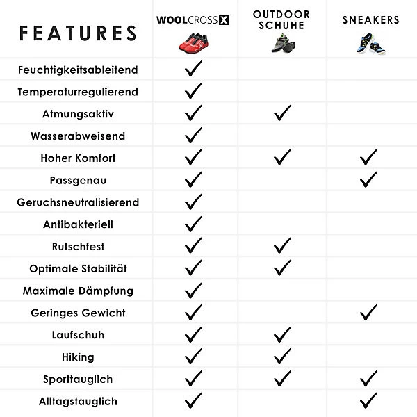Der Wool Cross X von Giesswein ist der weltweit erste Performance-Sportschuh mit dem Innenfutter aus natürlicher Merinowolle. Der Wool Cross X mit Micro-Grip-Technologie und temperaturregulierendem Materialien sorgt dafür, dass Sie sich auf allen Wegen des Lebens wohl fühlen.
